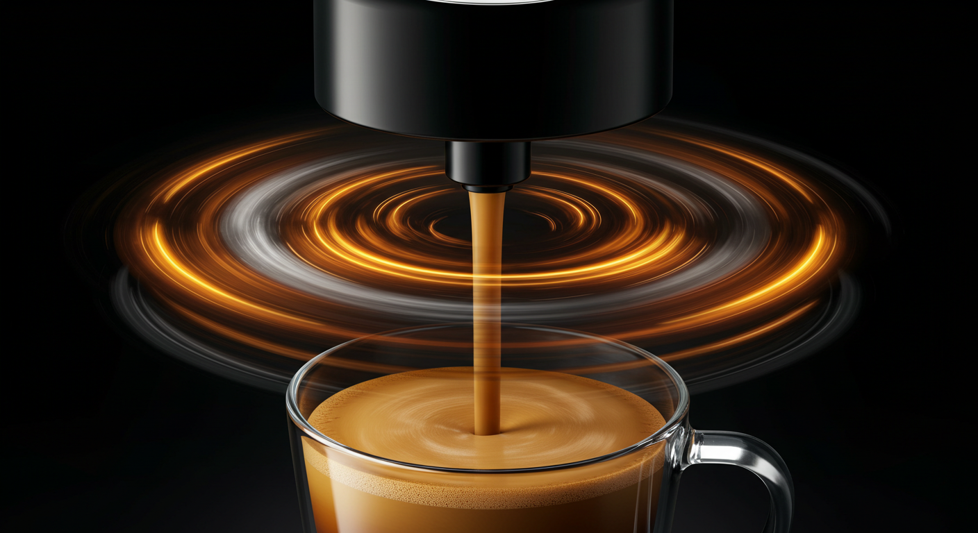 이름이 조금 어렵게 느껴지시죠? **'센트리퓨전™'**은 '원심력(Centrifugal)'과 '주입(Infusion)'의 합성어입니다. 머신이 캡슐을 넣은 상태에서 최대 7,000RPM의 속도로 빠르게 회전시키면서 뜨거운 물을 주입합니다. 이 과정에서 캡슐 안의 원두와 물이 강력하게 뒤섞이면서 커피가 추출되는데, 그 결과물이 바로 **풍부하고 부드러운 '크레마'**입니다. 이 크레마는 버츄오 커피 맛의 핵심이라고 할 수 있습니다.